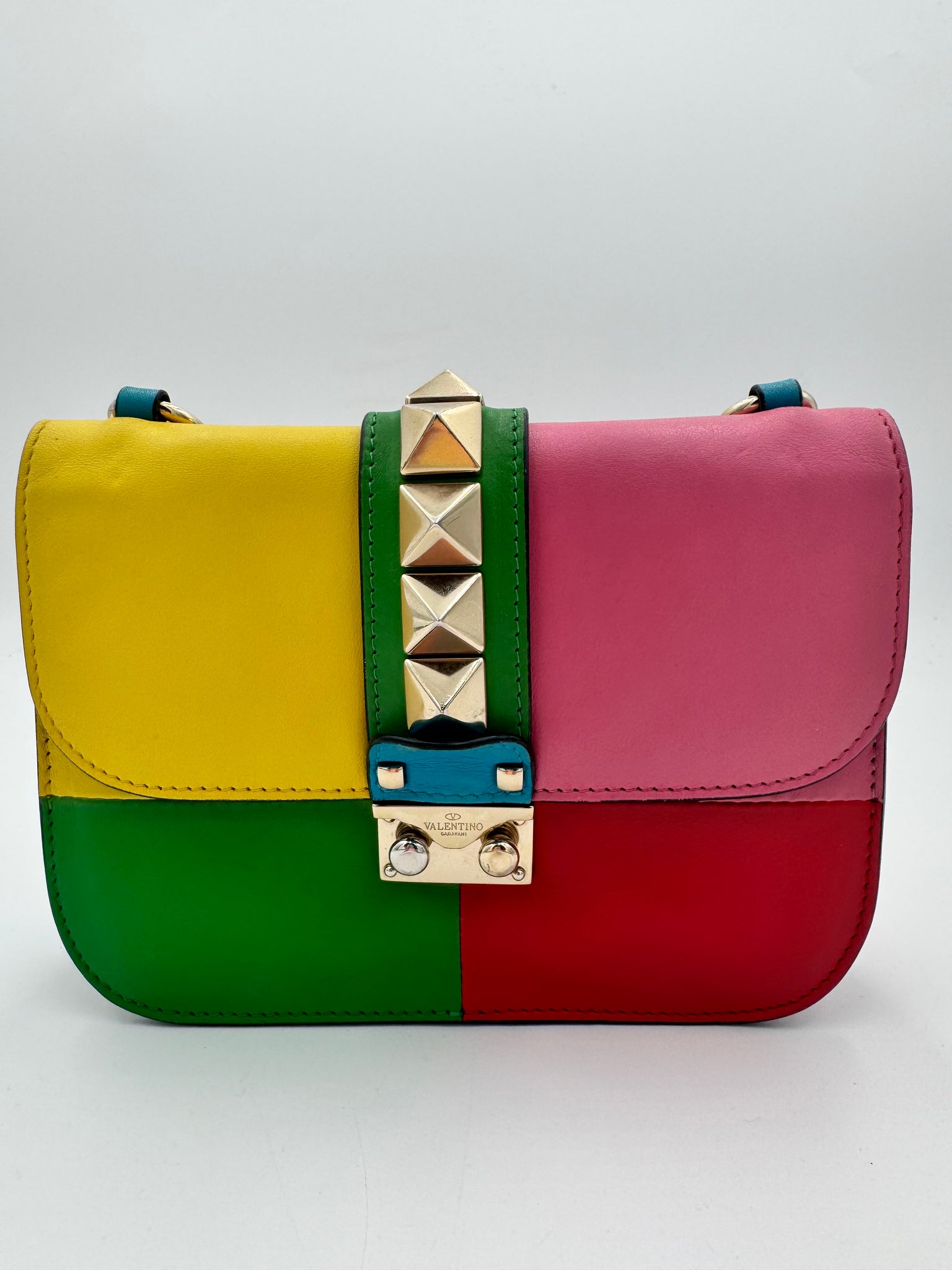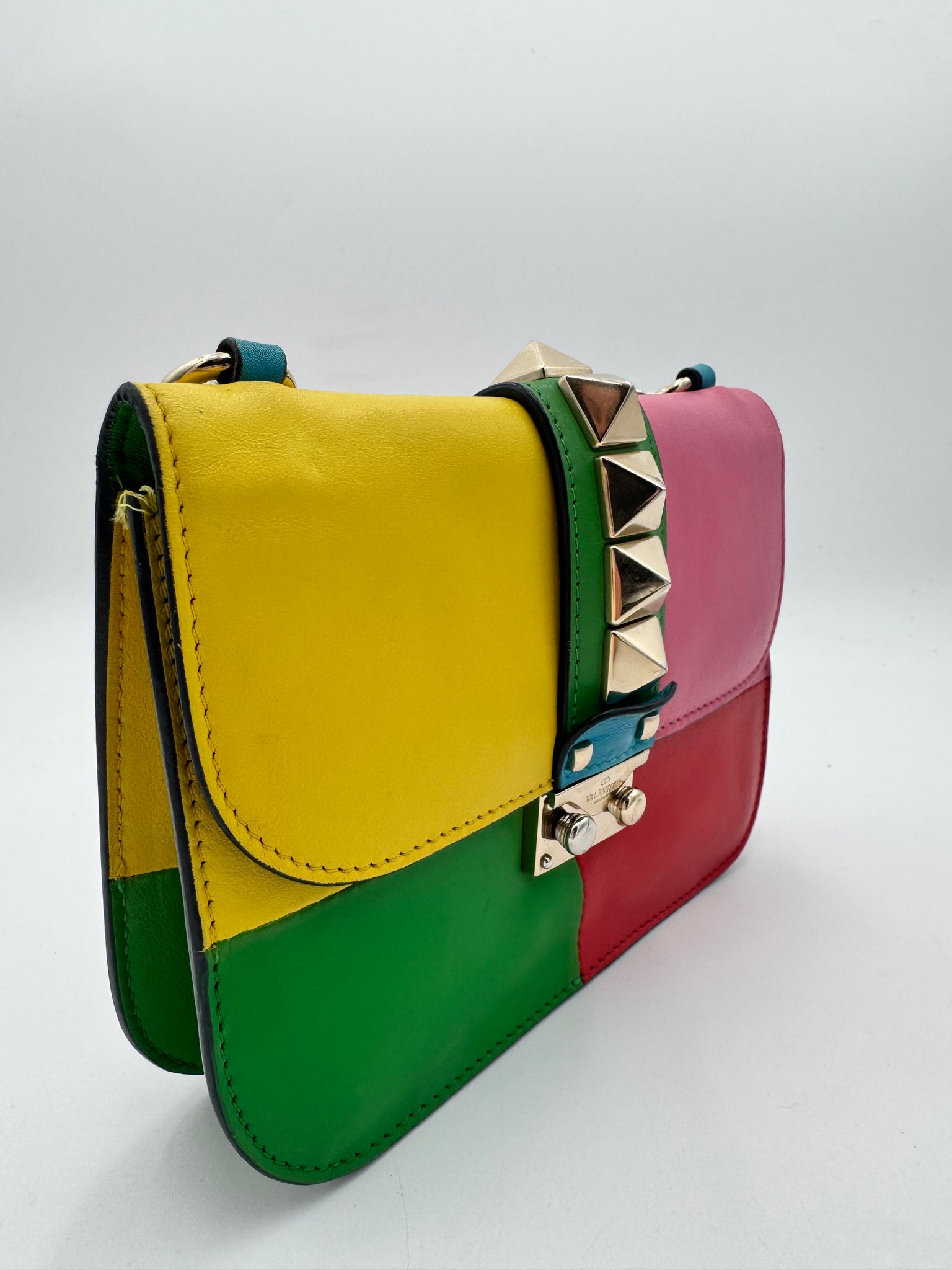 VALENTINO GARAVANI Vitello Small Glam Lock Rockstud Flap Rainbow